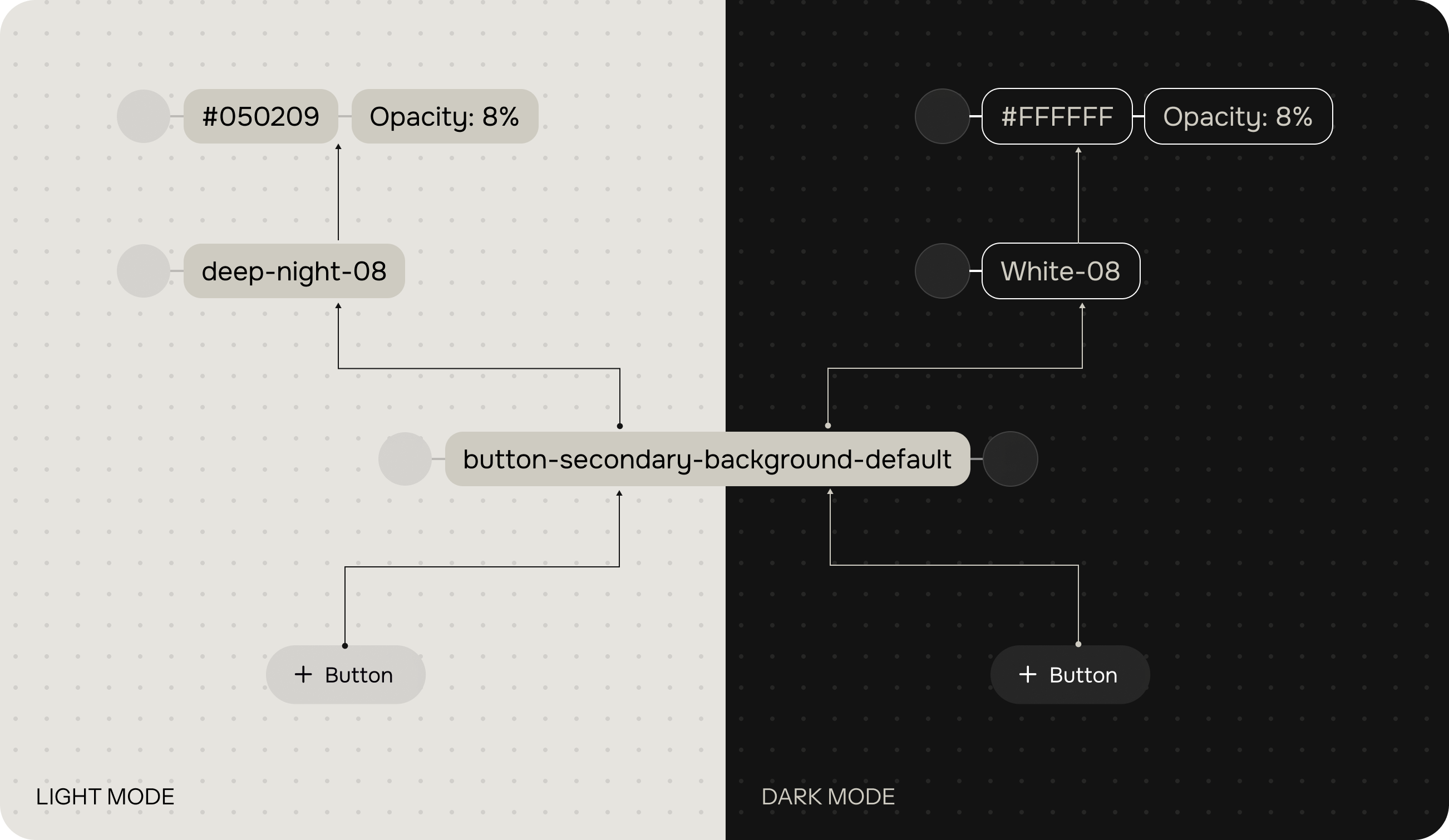 We realized that a flat or one-dimensional token structure couldn’t support the level of flexibility and clarity we needed—especially when dealing with dark/light themes and component-level overrides.